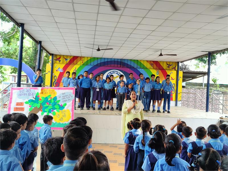 ●हिन्दी दिवस पर प्रधानाध्यापिका द्वारा हिन्दी के महत्व की व्याख्या